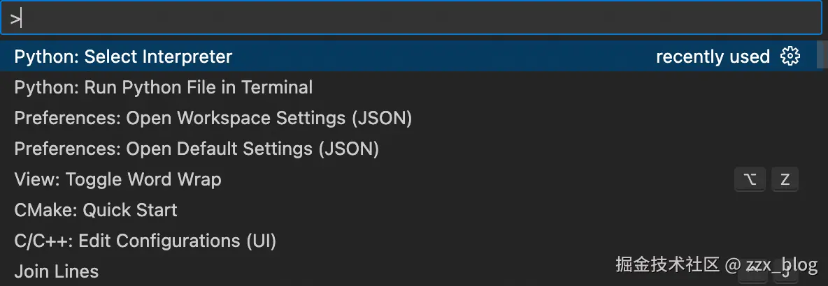 cmd + shift + p 呼出命令