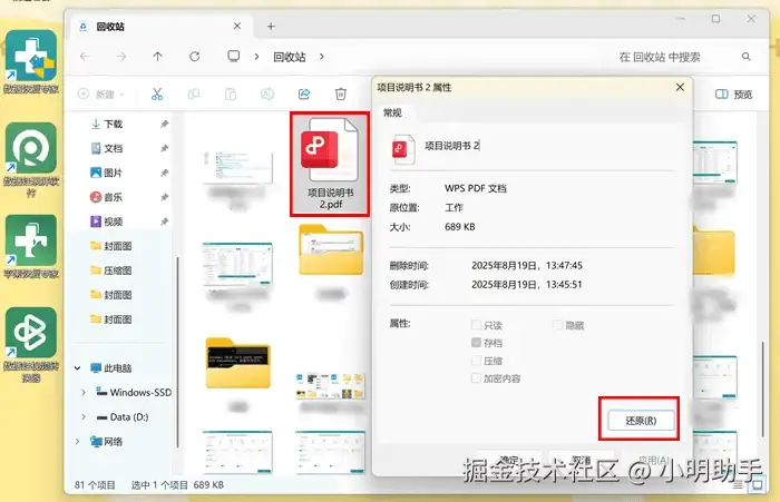 磁盘数据恢复方案三:回收站还原误删文件
