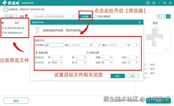 提示:有时候电脑可能扫描出来许多文件,这时候我们也不用慌张,可以选择使用【筛选器】等搜索工具帮助我们进一步筛选文件。