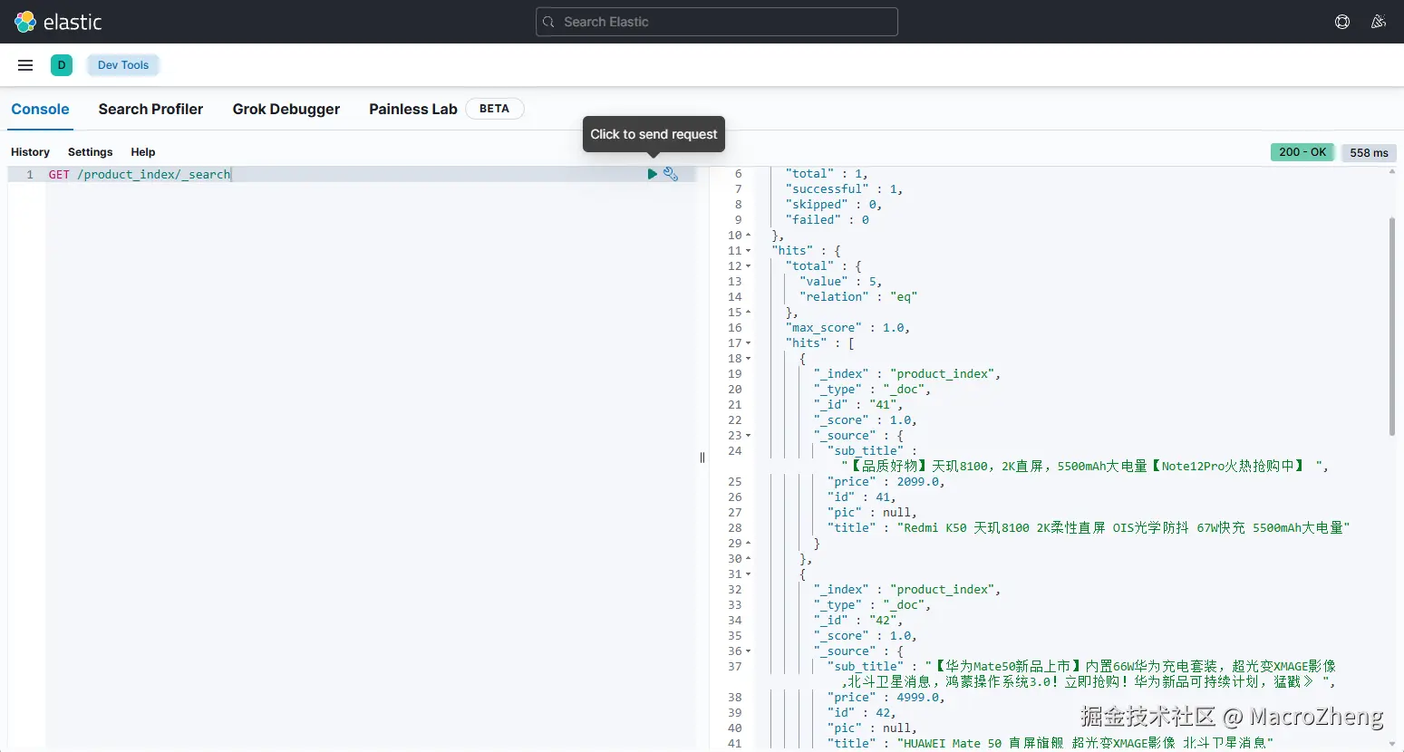 - 同步成功后可以在ES中查询到对应的数据。