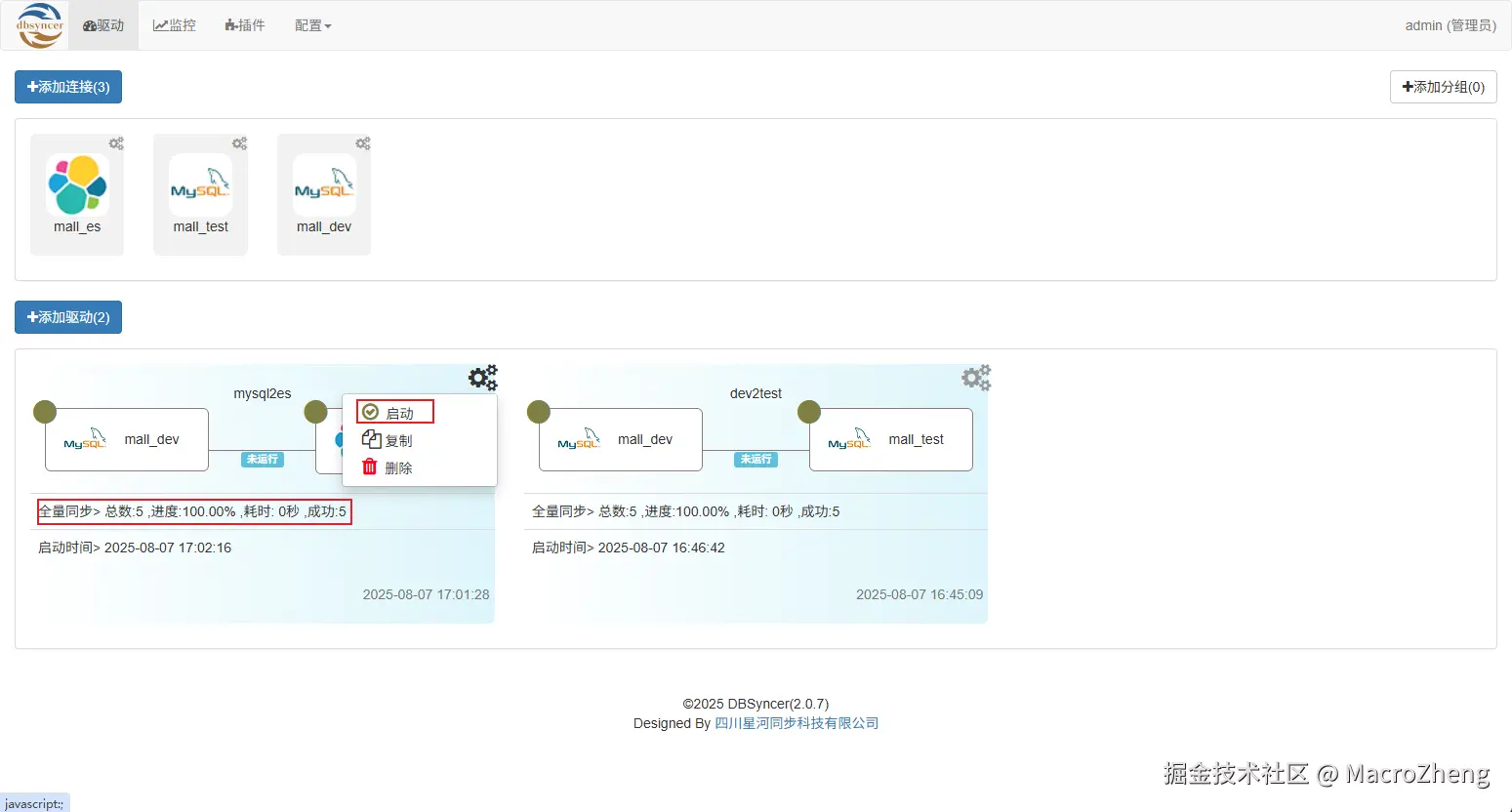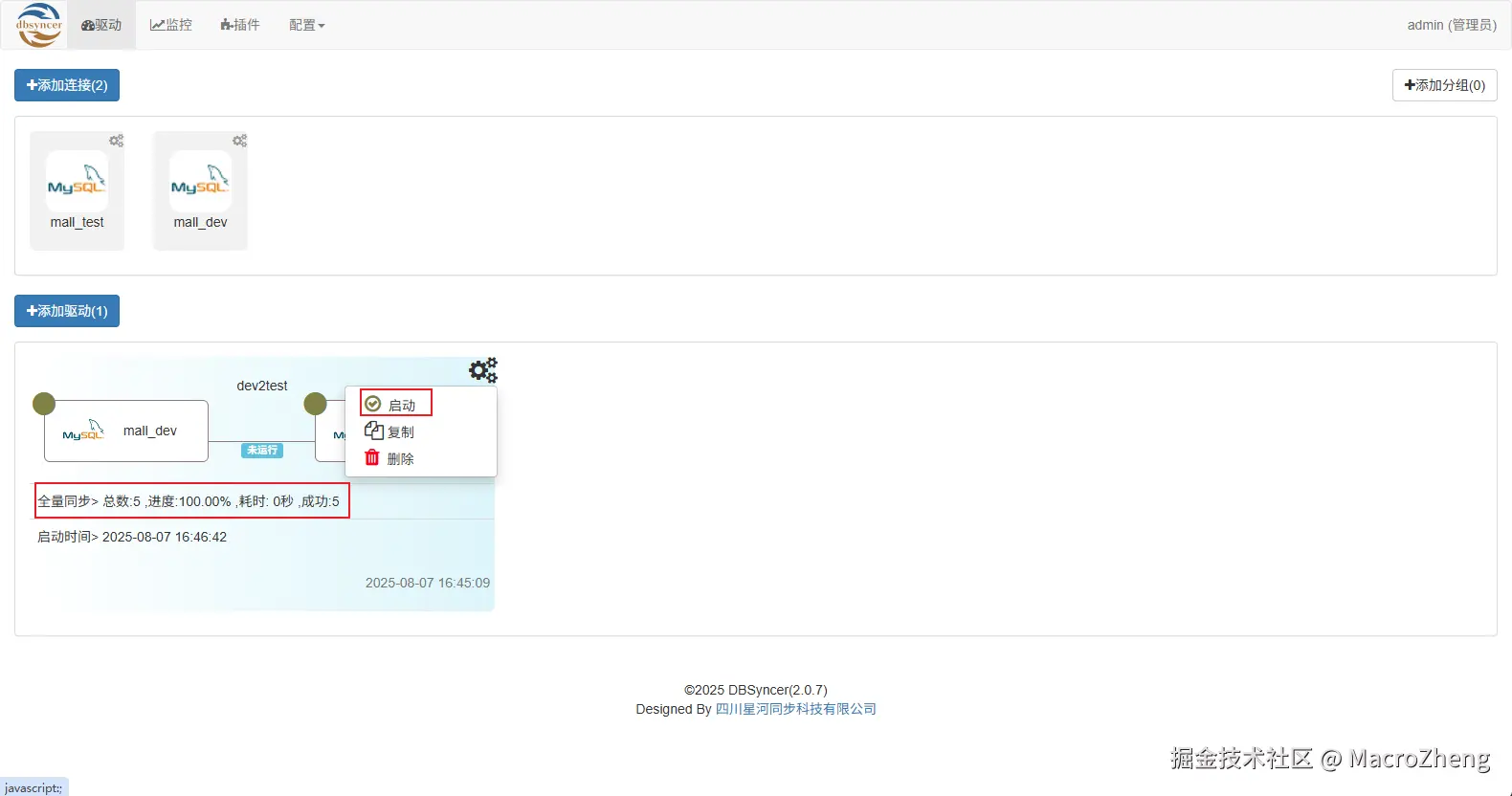 - 点击驱动右上角的启动按钮进行数据同步;