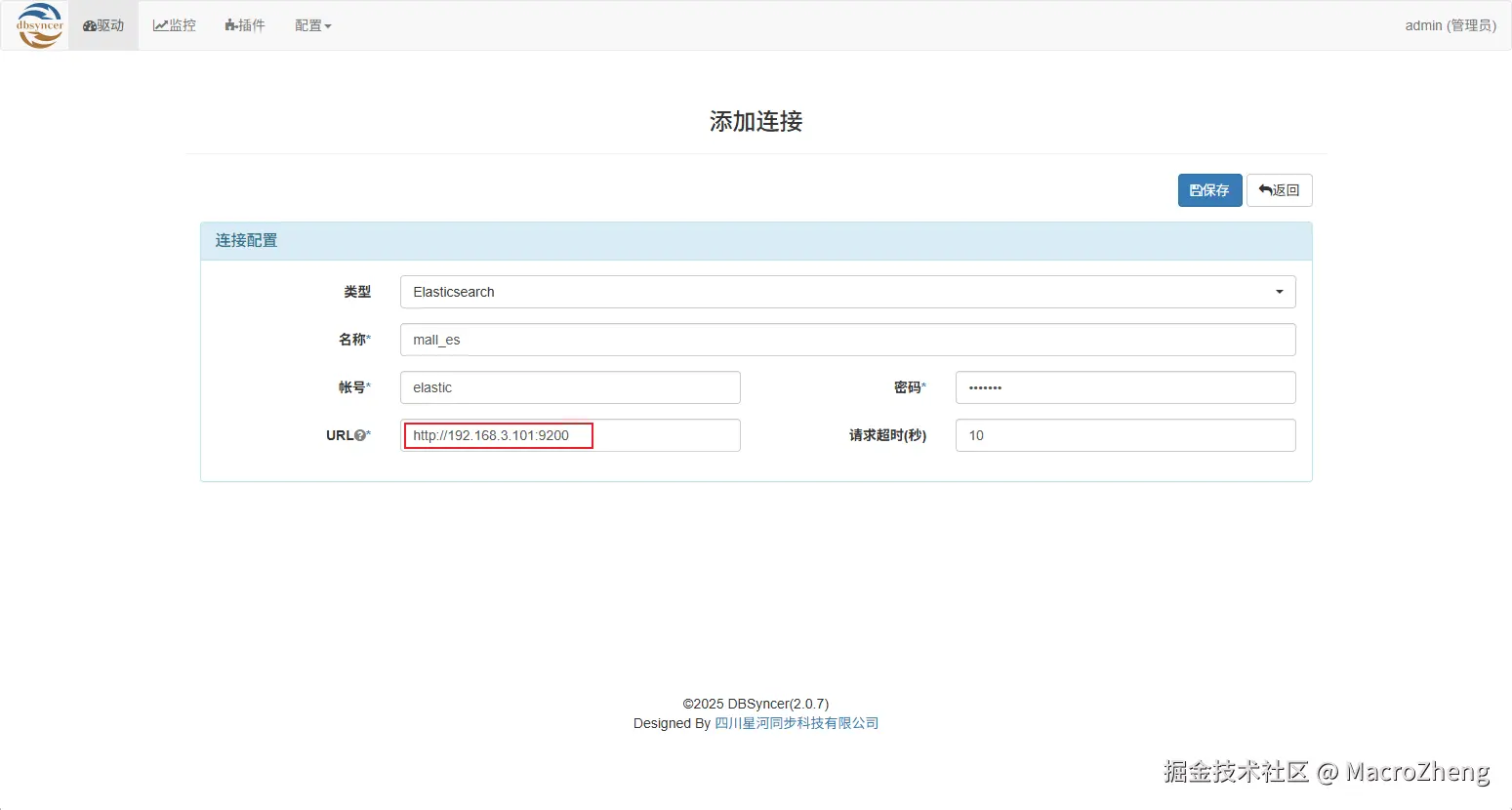 - 然后在DBSyncer中添加ES对应的连接,如果ES未设置密码的话随便输一个就行;