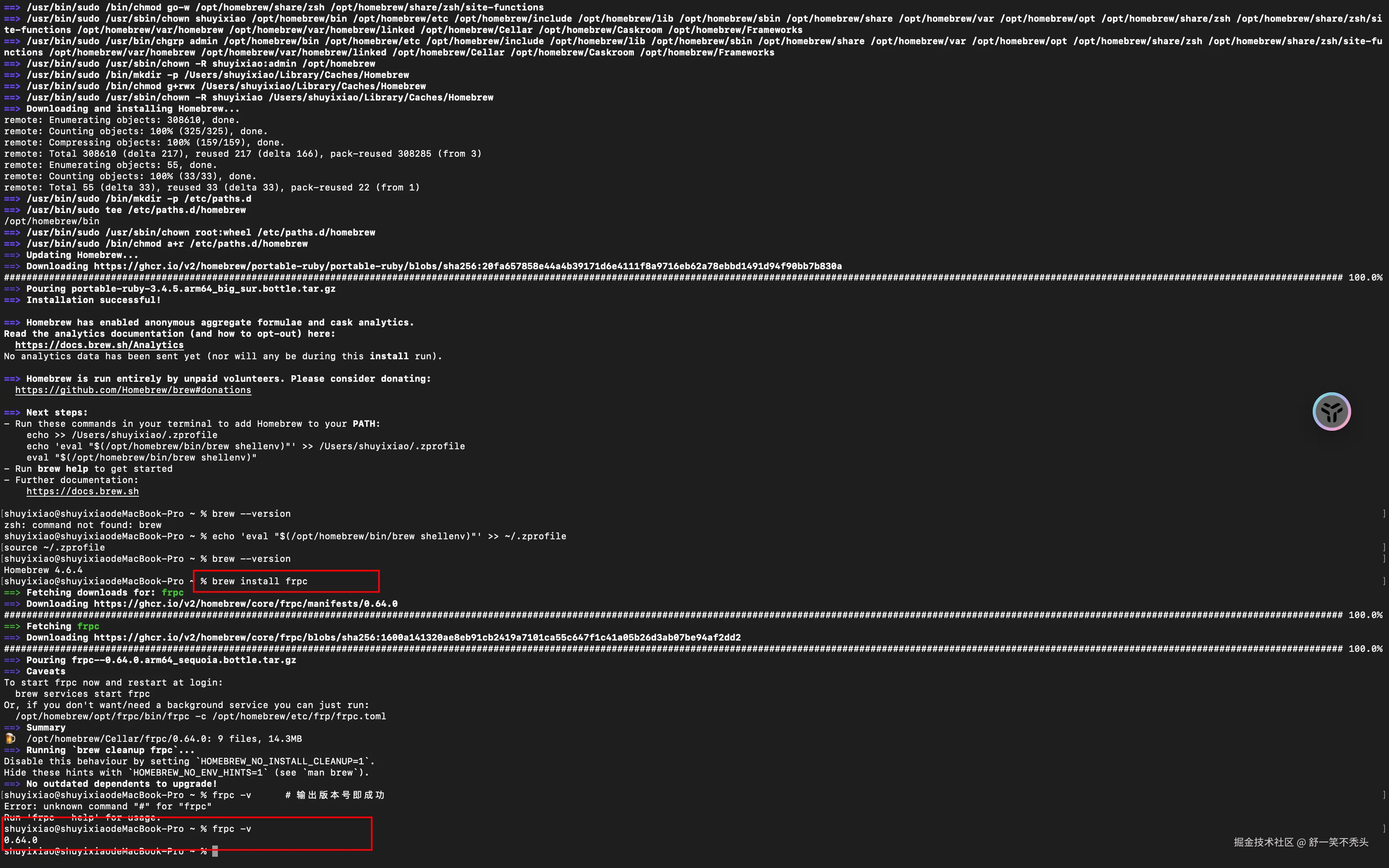 启动提示 command not found | 确认 brew install frpc 成功,且 PATH 正确。 |