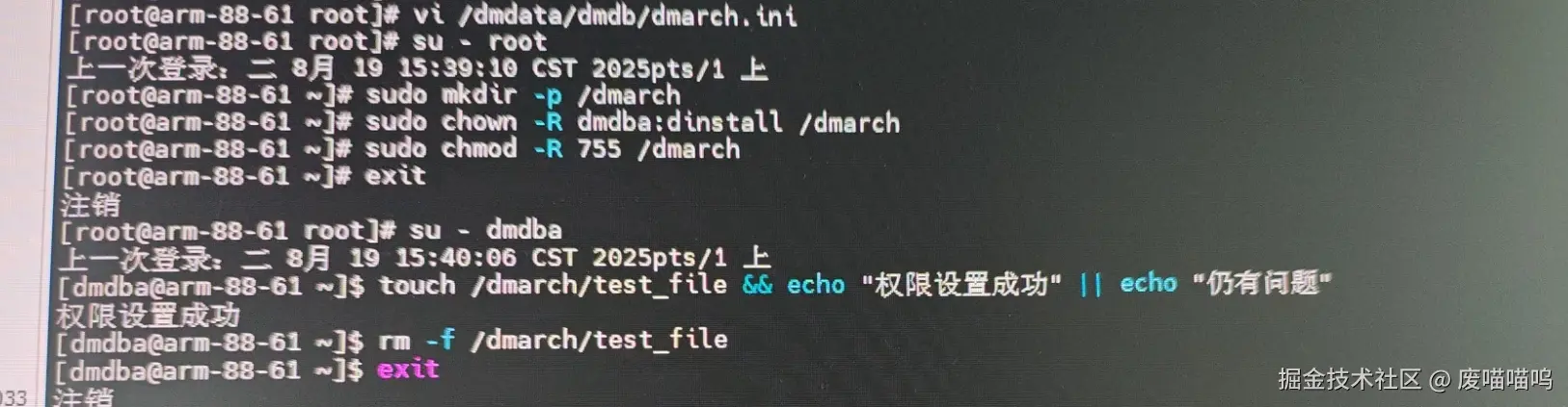 在实例目录下新建文件 dmarch.ini,执行以下命令:
