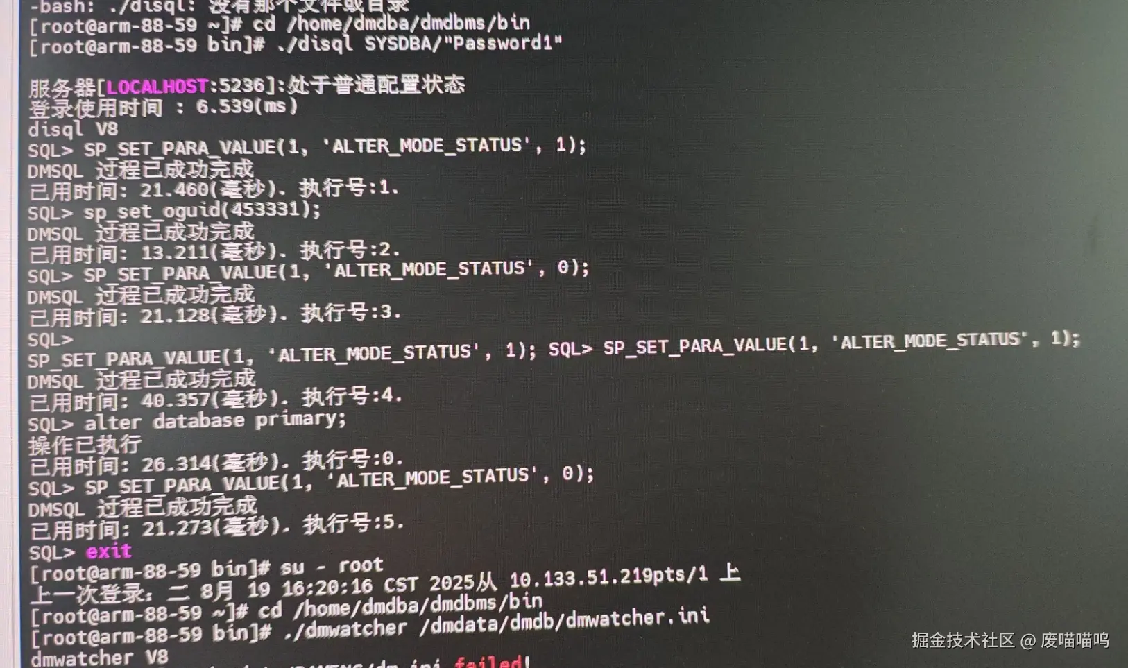 以主机dmdb01为主库,启动一次实例(启动一次后即可关停)