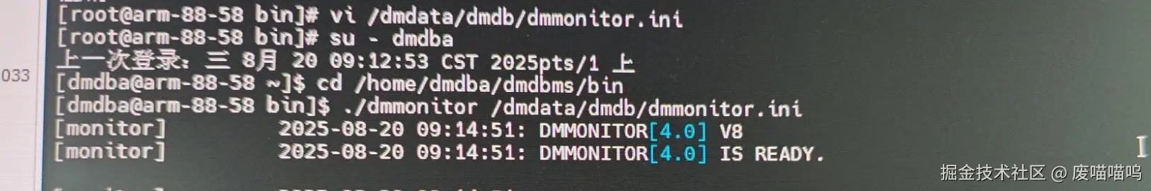 dmmonitor /dmdata/dmdb/dmmonitor.ini