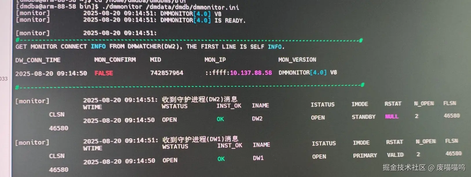 [monitor] 2025-08-18 15:12:20: 实例(DM2)的归档信息在实例(DM1)中没有找到