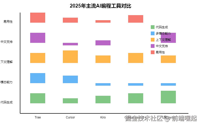 | Trae | 多模态交互、上下文理解引擎(Cue)、智能体(Builder)模式、多模型支持、本土化优势 | 需要快速实现UI设计、希望通过自然语言开发项目、对中文支持有较高要求的开发者 | 基础功能完全免费 | 中文语义理解准确率高达92%,完美支持中文变量名和注释 |