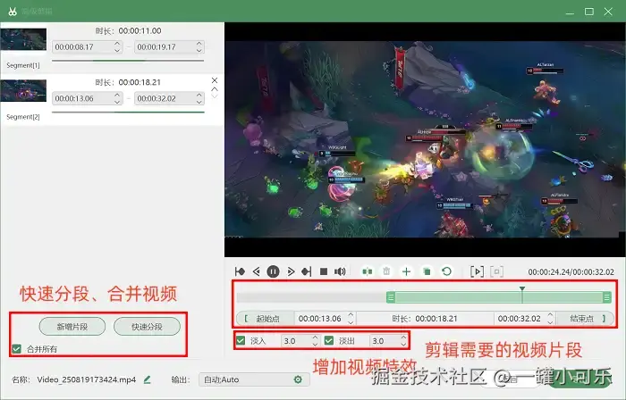 步骤3:录制结束后,可以借助软件自带的 “高级剪辑” 工具对录制好的视频进行后期处理,比如对视频进行快速分段,或者剪辑出所需的视频片段等。