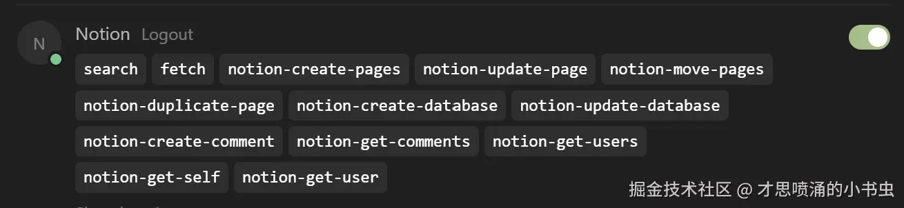 返回设置页面,并接入 “Tool&Integrations” 界面,我们会看到 MCP Server 已经导入成功,并且 Notion MCP 提示需要授权登录,按照指示登录 Notion,并完成授权即可。