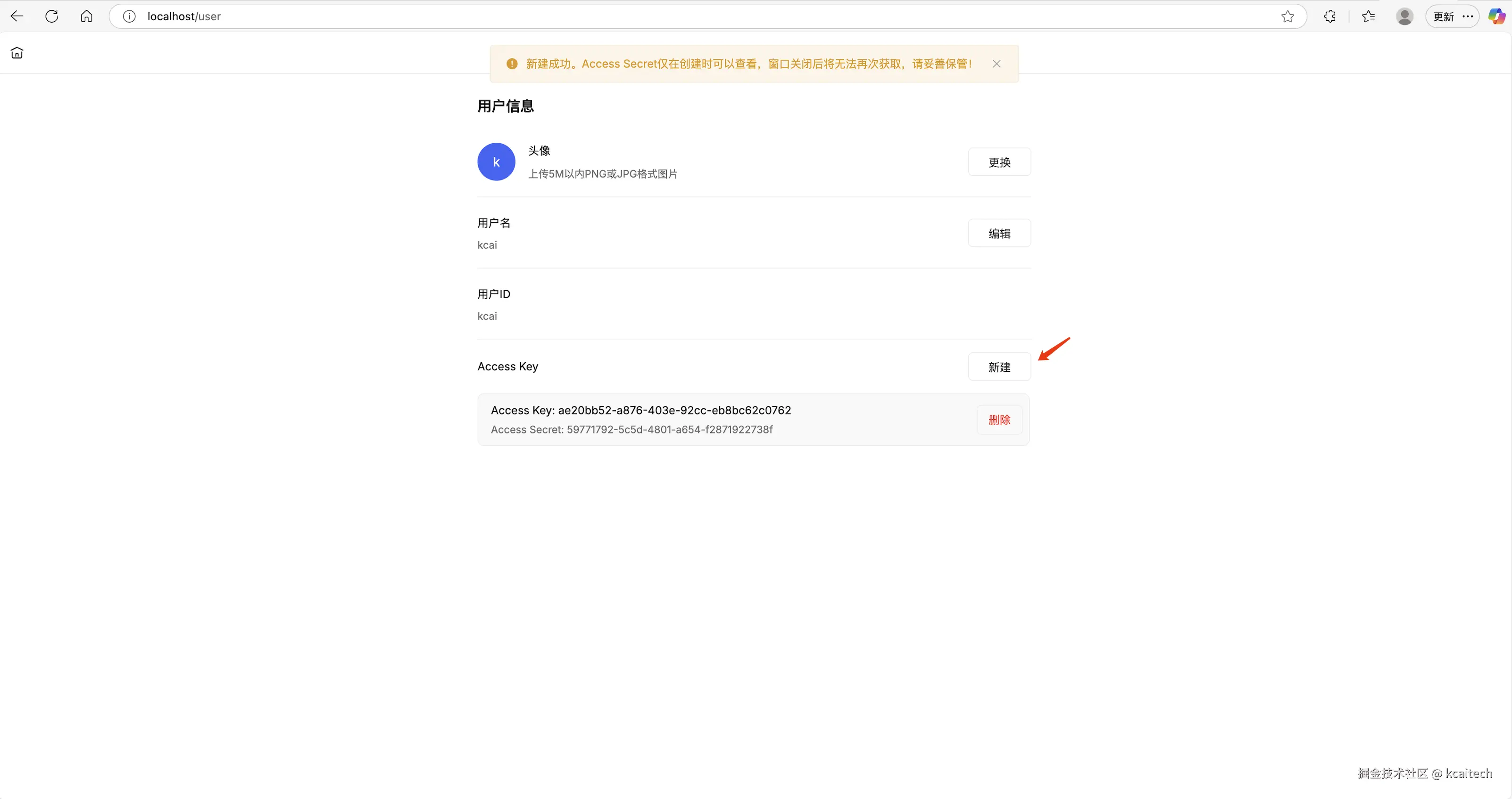 需要注意保存好access_secret,下次再打开这个页面是不可见的。当然遗失了只需要再新建一个就好了。