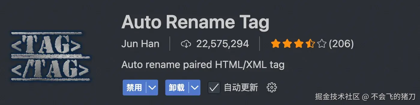 自动重命名配对标签,当你在修改一个开始标签(如)的名称时,插件会自动同步修改其对应的结束标签和开始标签,特别适合编写HTML、JSX、Vue、XML等包含标签(tag)的文件。