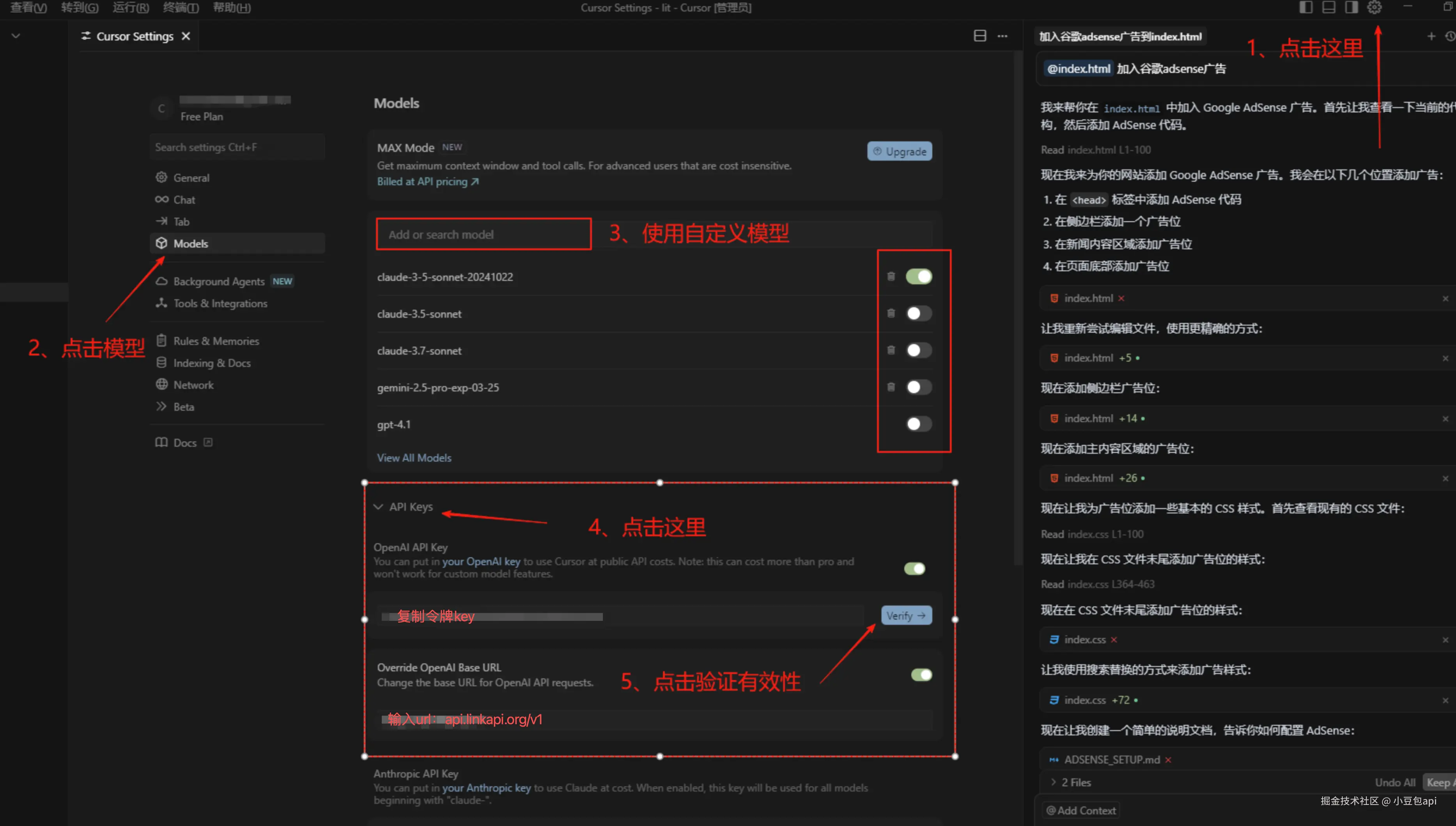 接下来进入重点内容:如何通过 小豆包 API 聚合平台(api.linkapi.org) 配置 Cursor。