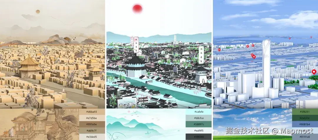 Mapmost 团队把风格化场景做到了极致,不管是写实、古风还是科技风格场景,都可以一键生成模型。