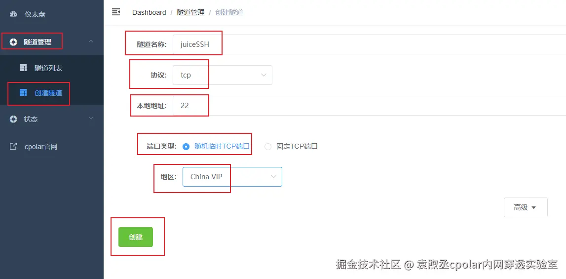 登录cpolar web UI管理界面后,点击左侧仪表盘的隧道管理——创建隧道: