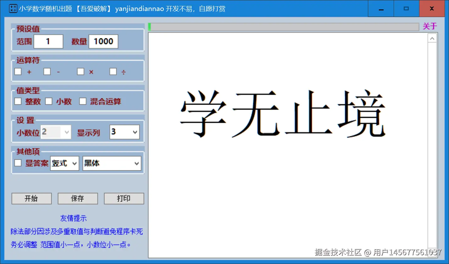 今天分享一款特别实用的小学数学题目生成工具。它轻巧好用,完全免费,还自带打印功能,特别适合家长和老师日常辅导使用。