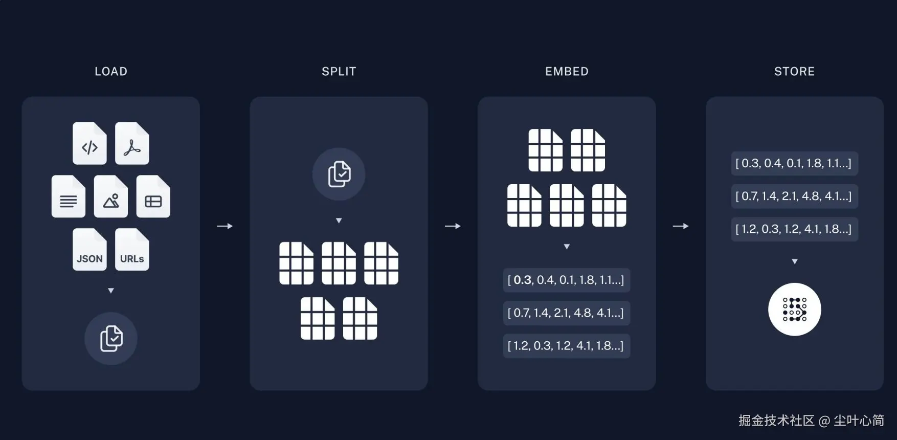 步骤: 1.加载:加载不同格式的文档,借助文档加载器实现 2.拆分:按一定规则把文档拆分成小块,借助文档拆分器实现 3.存储:对文档块进行向量化,并存储在向量数据库中