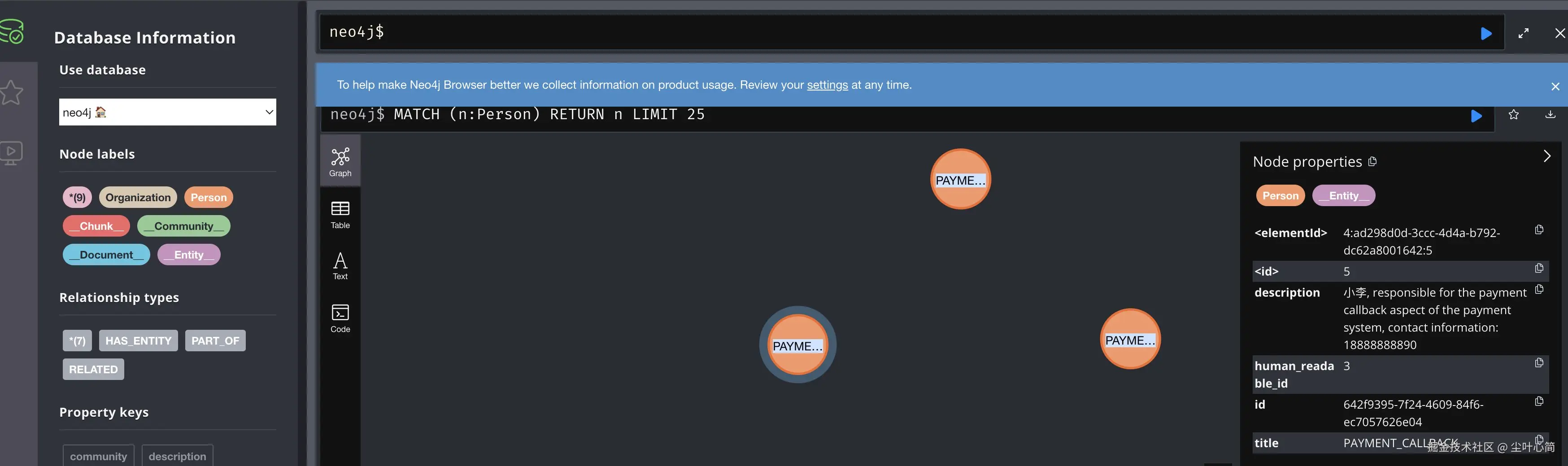 Neo4j呈现了实体之间的关系。