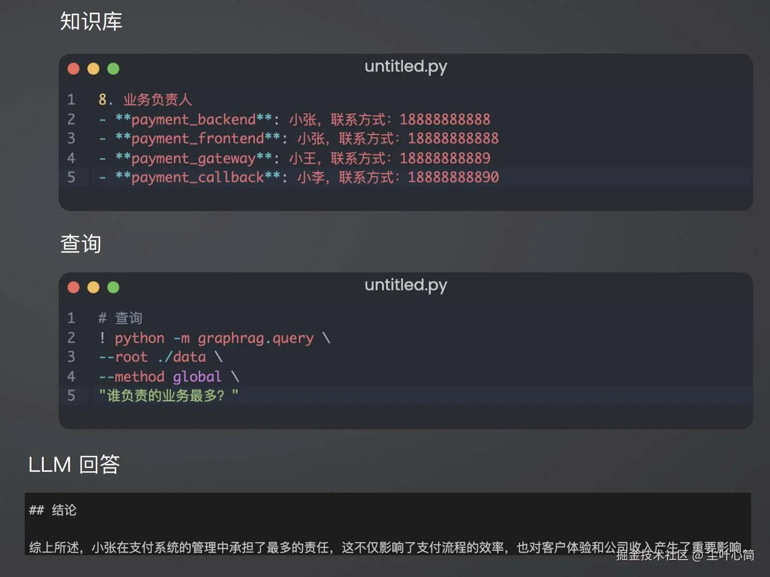 simple_rag.ipynb,安装一下相关包。 借助 LangChain TextSplitter,我们可以先将 markdown 格式的运维知识库进行拆分,然后进行 Embedding 并存储在本地向量数据库中。当用户提问时,将用户的问题也进行 Embedding,然后通过向量检索的方式找到最相似的知识库内容,并将内容返回给大模型,然后再进行问答。