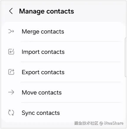 在 Android 上备份联系人对于避免丢失重要联系至关重要。现在,您有 5 种有效可靠的方法来备份 Android 手机上的联系人。如果您想直接备份到手机,可以将联系人导出为 VCF 文件。但如果您想更安全地备份,请使用iReaShare Android Manager将联系人备份到电脑上。该软件也支持管理联系人和其他数据。