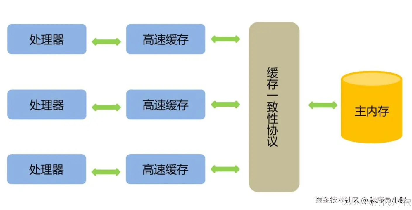 volatile的变量进行写操作,JVM就会向处理器发送一条指令,将这个变量所在缓存行的数据写回到系统内存。但是,就算写回到内存,如果其他处理器缓存的值还是旧的,再执行计算操作就会有问题。 - 在多处理器下,为了保证各个处理器的缓存是一致的,就会实现缓存一致性协议,当某个CPU在写数据时,如果发现操作的变量是共享变量,则会通知其他CPU告知该变量的缓存行是无效的,因此其他CPU在读取该变量时,发现其无效会重新从主存中加载数据。