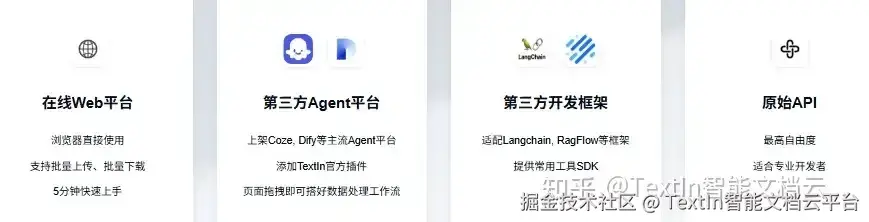 TextIn文档解析工具就是一款可以嵌入到知识库运作中的文档预处理工具,它有多种的接入方式,支持线上云端使用、API调用、MCP接口以及已上架如Dify、Coze等Agent搭建平台。