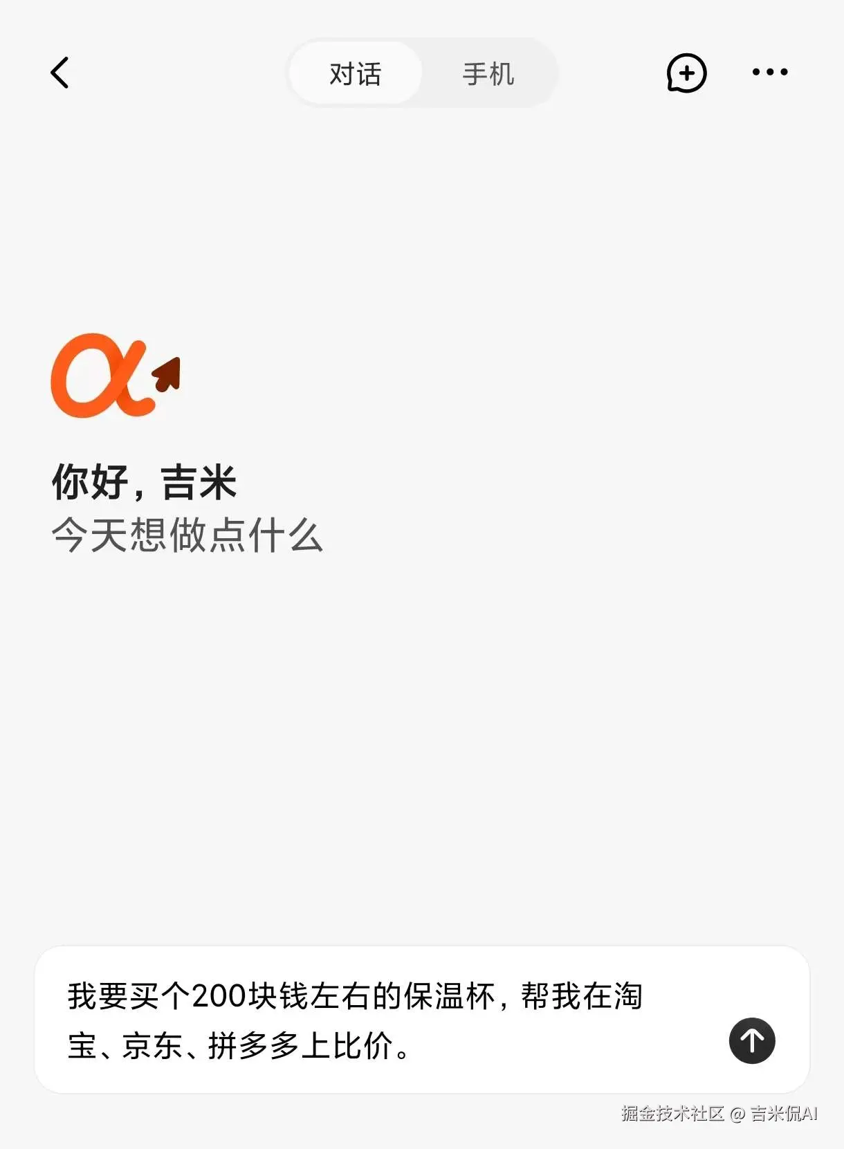 以“生活助手”为例,点进来后是一个「AI对话」窗口,这个界面是给AutoGLM发任务的地方。