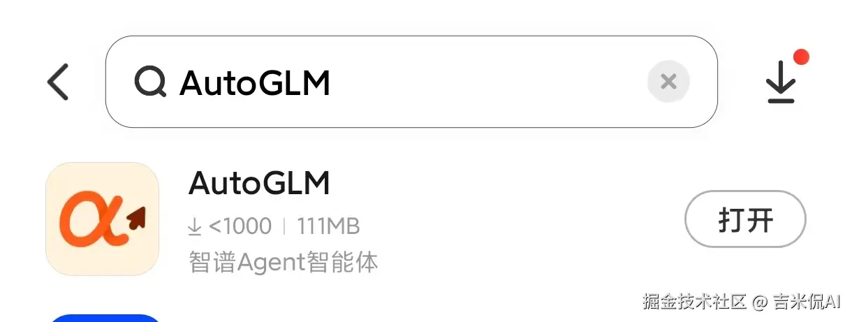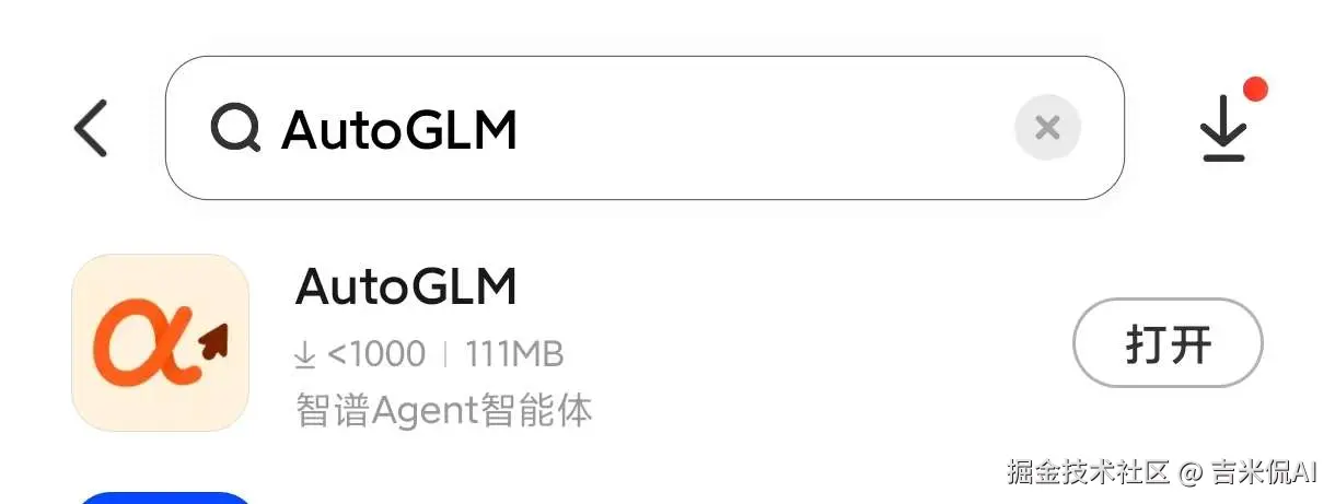 在 AppStore 或安卓手机管家中,搜索「AutoGLM」即可下载 APP。