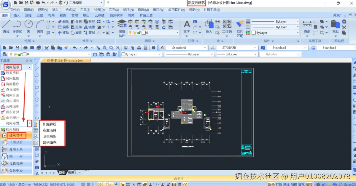 浩辰云建筑工具箱与菜单的操作方式如下: