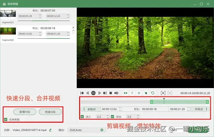 步骤3:点击结束录制按钮后,会自动进入预览页面。如果想对视频进行重命名,或是添加淡入等特效,都可以点击 “高级剪辑” 进行相关设置。