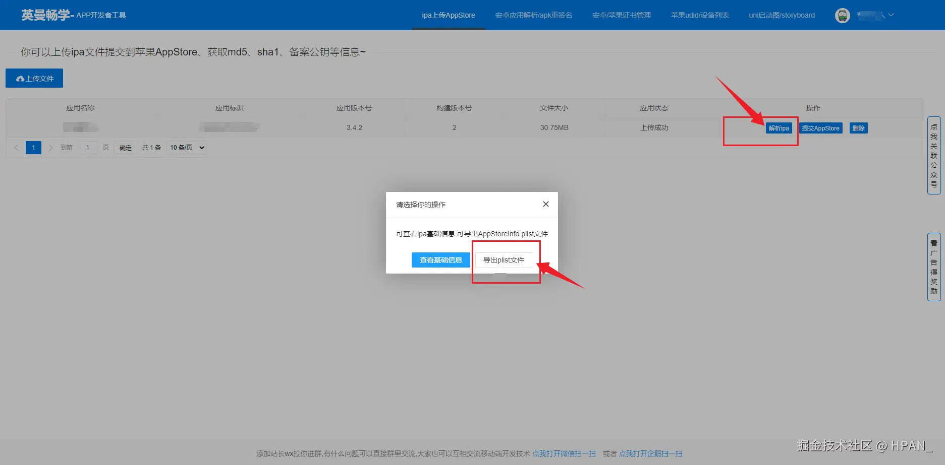 在这个网站 yuanjkeji.com/app-tool/io… 可以导出AppStoreInfo.plist文件,切记AppStoreInfo.plist文件一定要放到你电脑ipa文件的同级目录下。