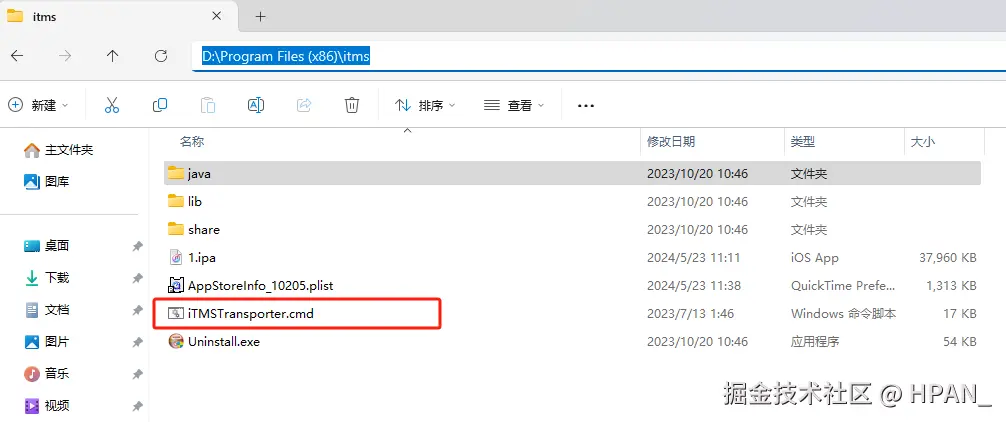 务必注意不是bin目录下,是有下面iTMSTransporter.cmd可执行程序的目录下