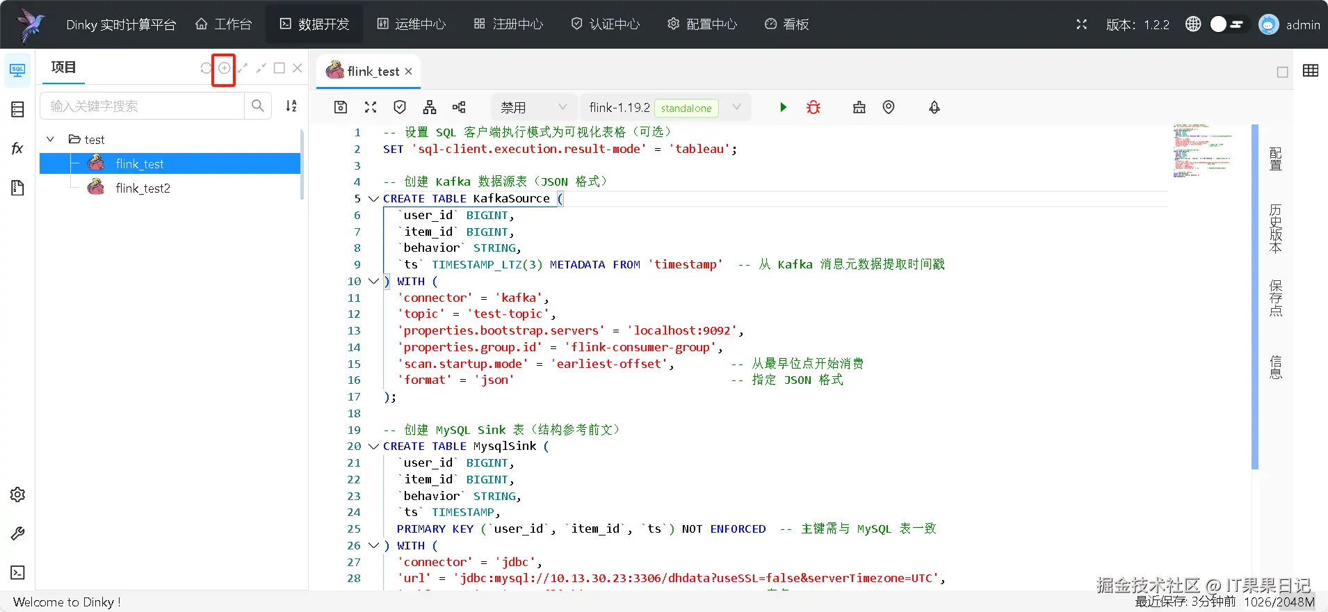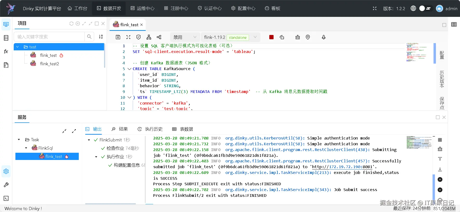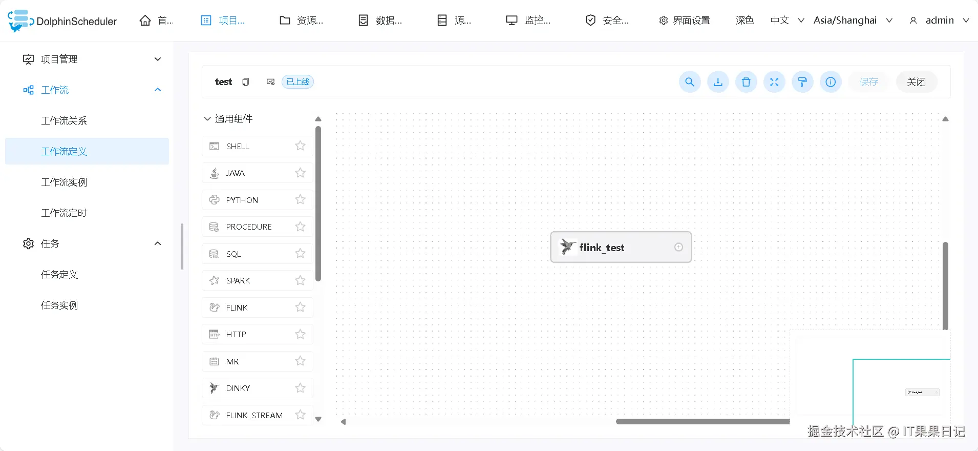 进入 test 工作流,可以看到 flink_test 名称的 dinky 任务。