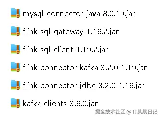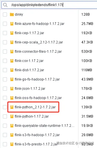 添加 Flink 依赖,将下列文件添加到 /ops/app/dinky/extends/flink1.19 路径下,以下文件可以去$FLINK_HOME/lib 目录下拷贝。