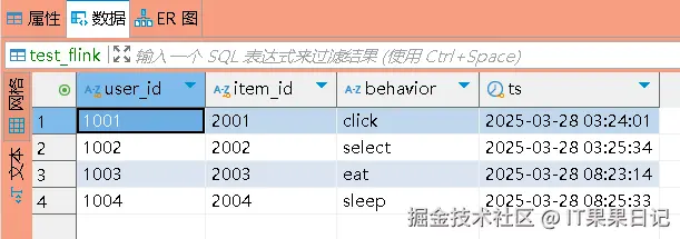 执行一下 flink_test 作业,依然是从 kafka 读取数据到 mysql , test_flink 的数据变成了如下图所示: