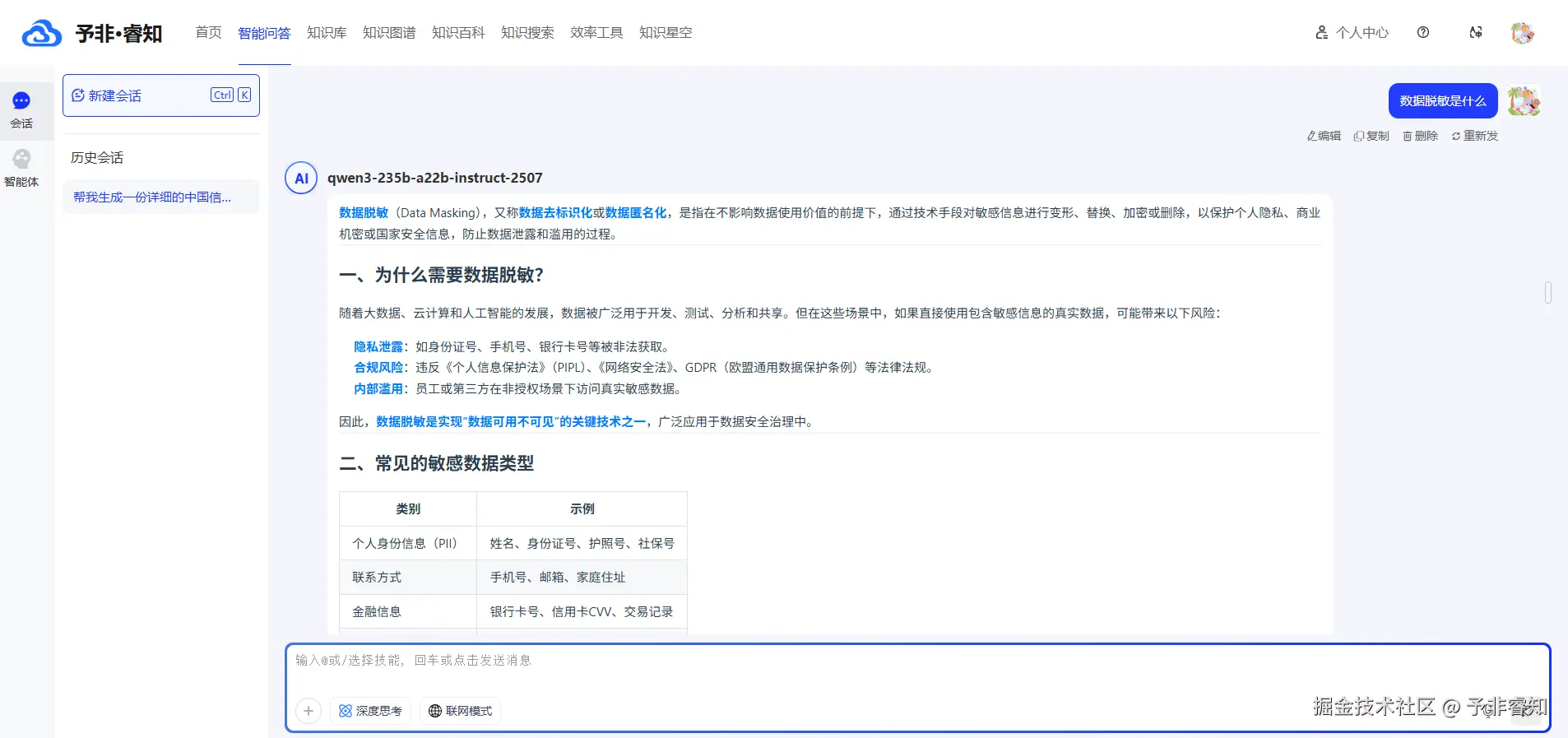 要打破这副枷锁,需要的不是一个更快的搜索引擎,而是一种全新的思维范式。予非·睿知企业AI知识引擎平台所做的,正是为企业构建一个能够理解、思考、并与人自然对话的“数字心智”或“企业大脑”。