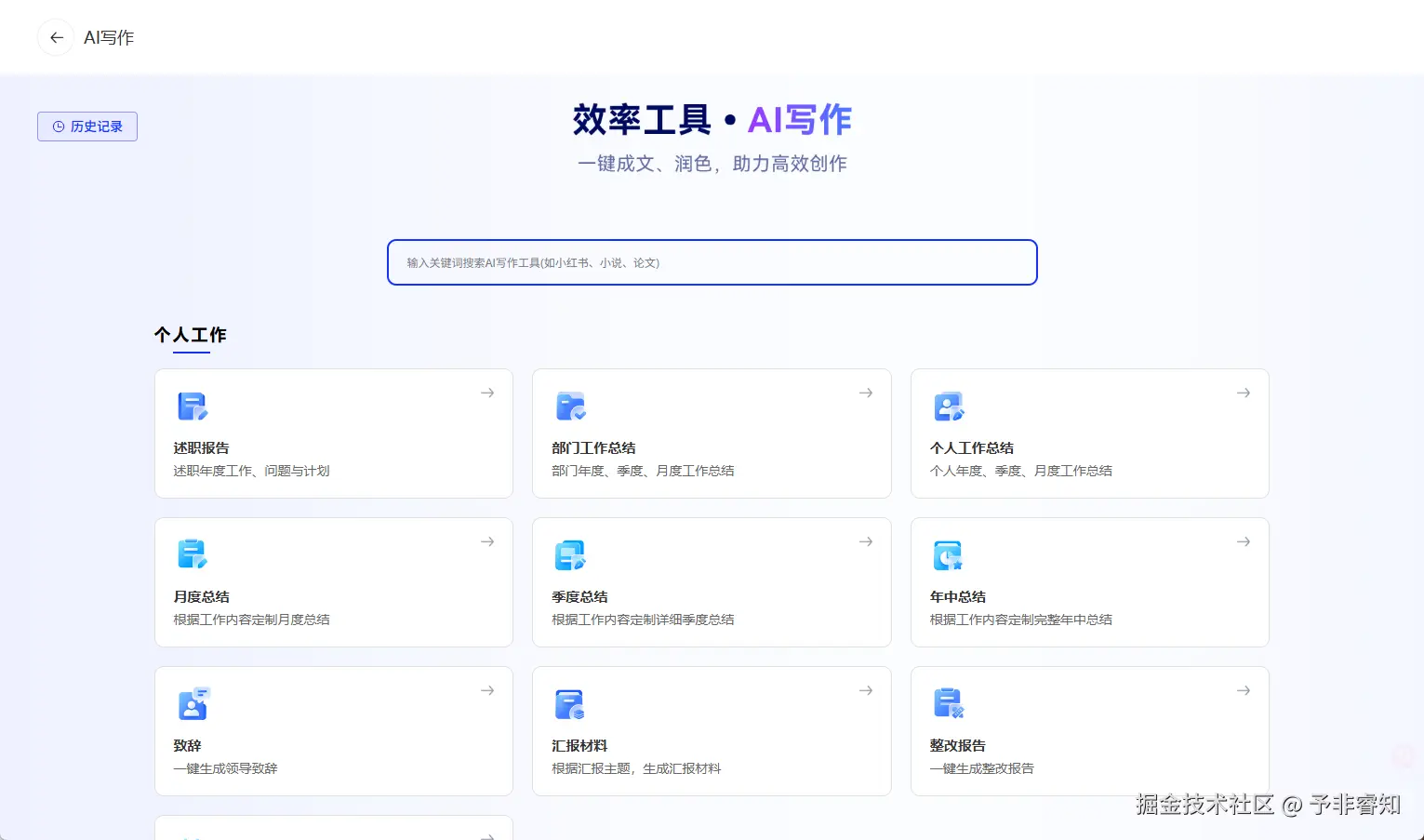 开箱即用的智能化工具: 平台内置了包括AI写作、PPT创成、文本校对、文档总结、合同生成、会议纪要等在内的多种效率工具。这些工具深度融合了大模型能力,能够一键生成高质量的文案、演示稿和分析报告,将员工从繁琐的重复性劳动中解放出来。