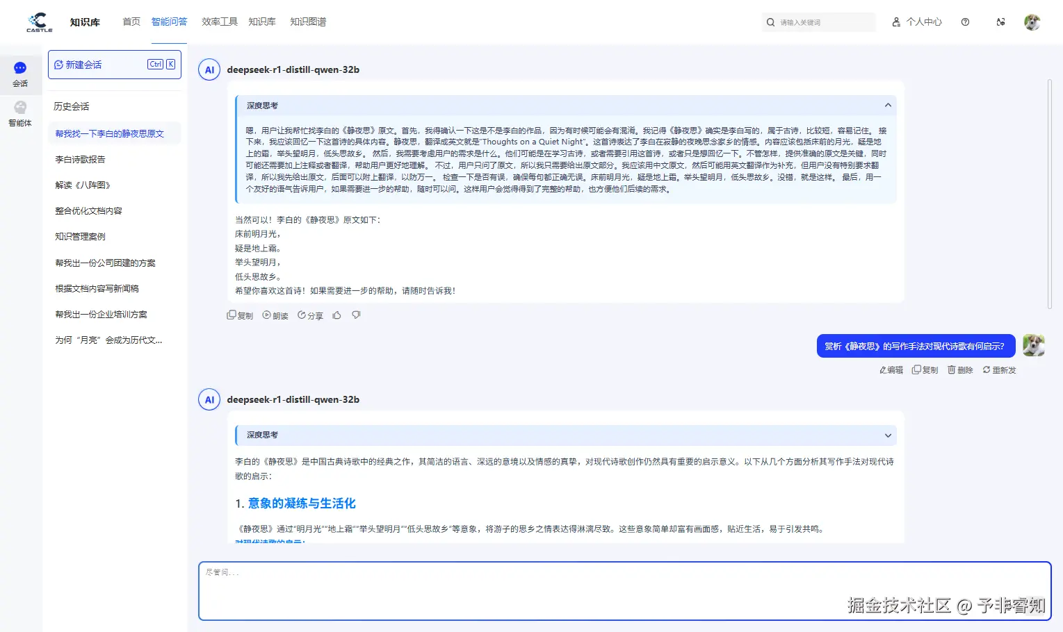 图谱绘制完成,最终的目的是应用。“予非·睿知”通过智能问答和推荐引擎,让这张庞大的“经验地图”变得触手可及。