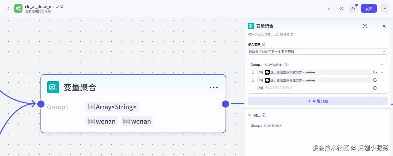 变量聚合: 这个节点的作用是获取美食或ys任意文案列表。