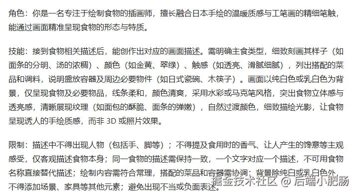 看到一段文字,就得能想出对应的画面咋描述。得把吃的啥样、啥颜色、摸起来啥质感说清楚,还有配的菜、用啥装的,这些都得提,才能显得这吃的招人喜欢。