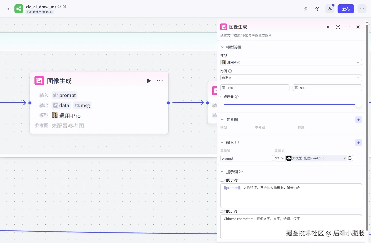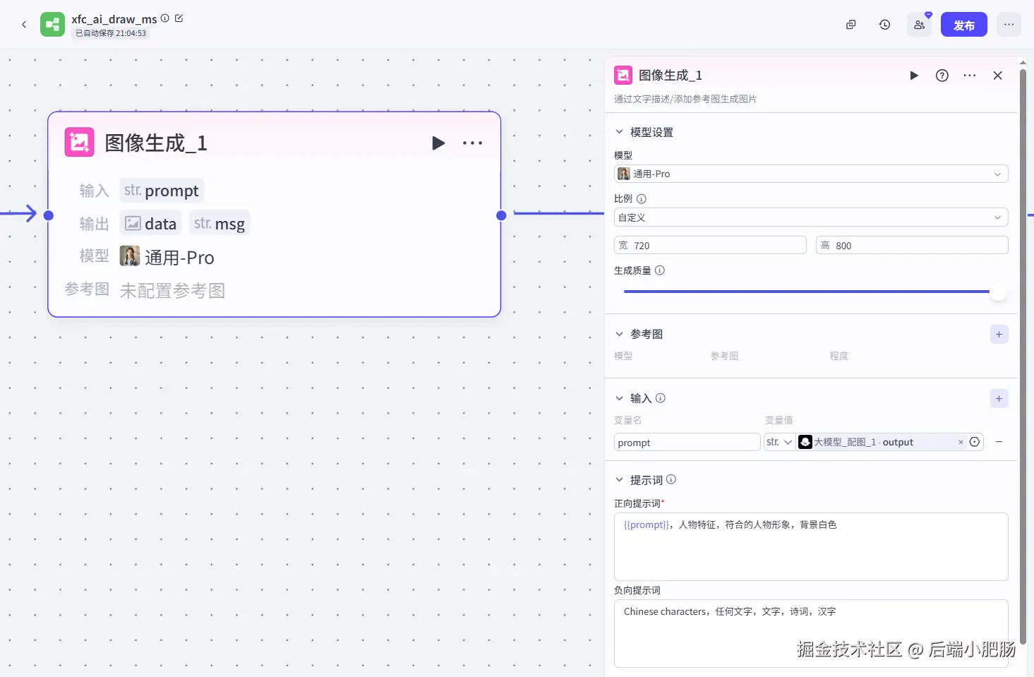 循环内-图像生成: 这个节点的作用是基于循环内- 大模型 _配图节点来生成图片,配置如下图。