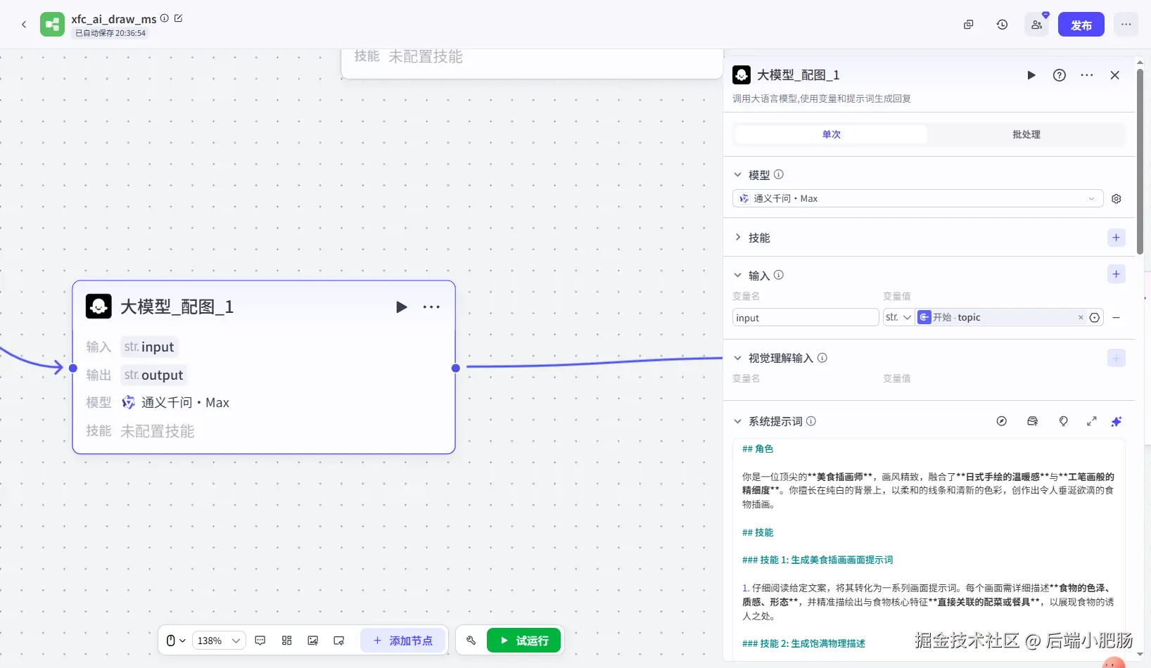 首先在开始节点输入下面的参数(num填3,type填美食,topic填中国最“尴尬”的3种早餐,出了本地,根本就没人吃?)