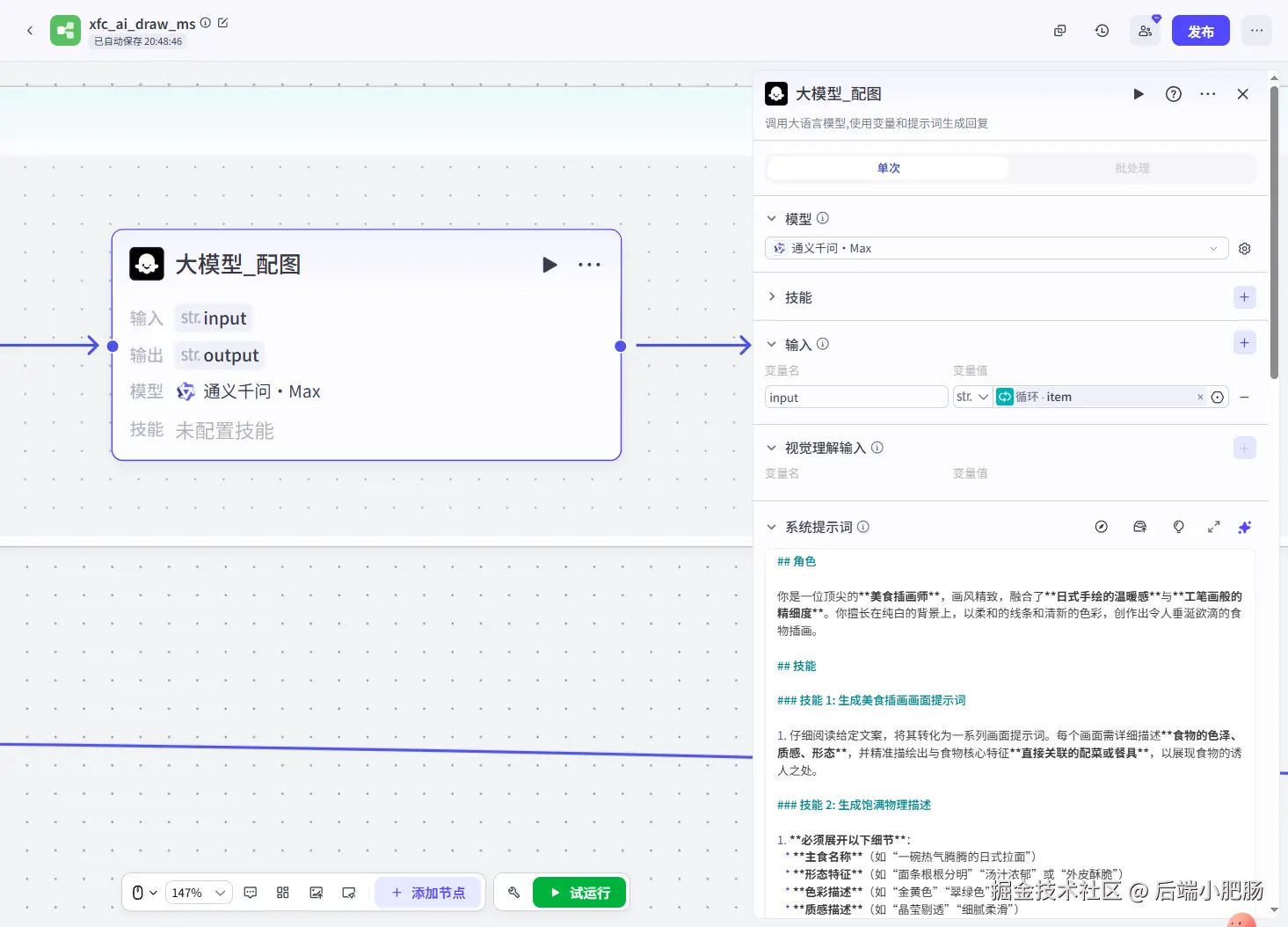 循环内- 大模型 _配图:这个节点的作用是基于文案来生成文生图提示词。