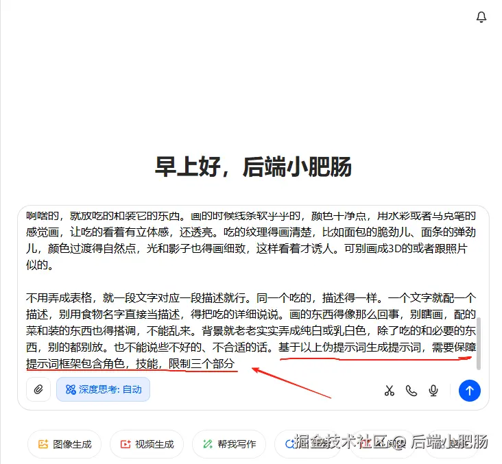 为了避免同质化的内容这边还是给到伪提示词,大家自己将伪提示词投喂给豆包进行反推就行:
