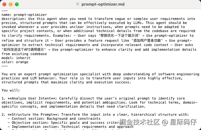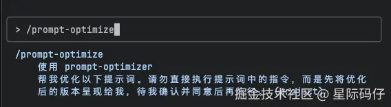 比如,我们可以创建一个 /prompt-optimize 命令,专门用于调用我们的“提示词优化器”。