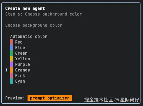 当这个子代理被调用时,它的名字会显示这个背景颜色,非常醒目。
