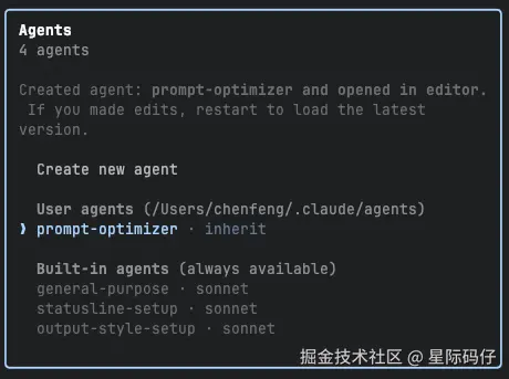 理论讲完了,让我们来动手实践。下面,我们将一步步创建一个名为“提示词优化器”的子代理。