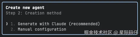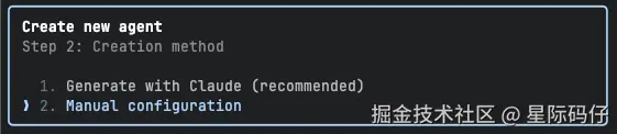 如果你想完全掌控子代理的创建过程,可以选择手动配置。步骤与辅助生成类似,区别在于以下几点: