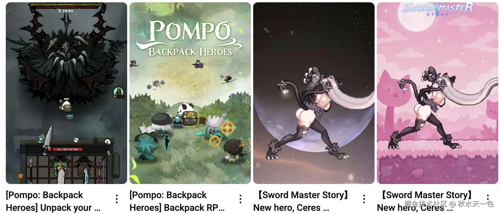 事实上,Super Planet并非“不懂人心”,在匀力宣传【Pompo: Backpack Heroes】,Super Planet还不忘时不时上传老游戏【Sword Master Story】的推广视频。从封面到内容,各种意义上的吸睛。