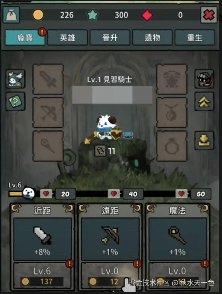 【Pompo】的养成在放置RPG里算得上丰富繁琐那一档,光主角个人就有6个装备孔要强化,提升角色等级,强化庞宝近距离、远距离、魔法攻击的“技能”等级。“英雄”队友和主角庞宝靠碎片晋升,带强化词条的遗物系统,以及重置角色、物品、消耗材料的“重生”机制。当然也少不了常规的爬塔、肉鸽、社交部分……